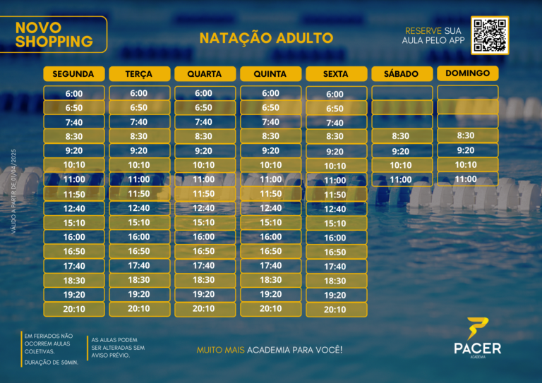 Natação, Hidroginástica não fazem parte do plano terrestre e possui custo adicional. Mais informações e matrículas diretamente na recepção da unidade. Informações sujeita a alterações sem aviso prévio.